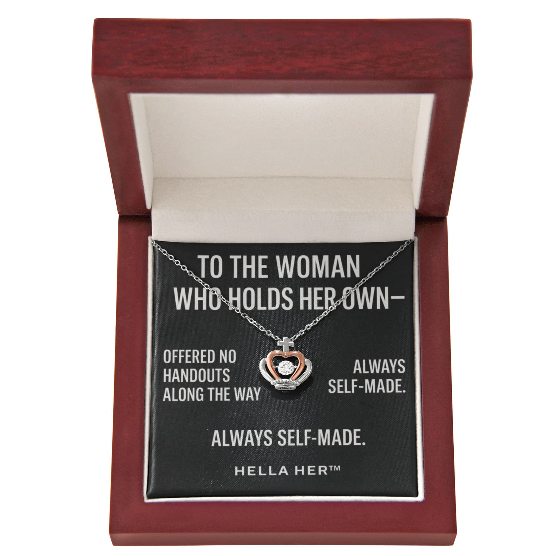 Imagine her reaction receiving this stunning Crown Pendant Necklace. Designed to resemble a regal crown, this exquisite piece features a dazzling cubic zirconia crystal at its center, catching the light with every movement. The delicate blend of silver and rose gold tones adds a touch of timeless beauty, making it the perfect gift for someone who reigns over your heart.